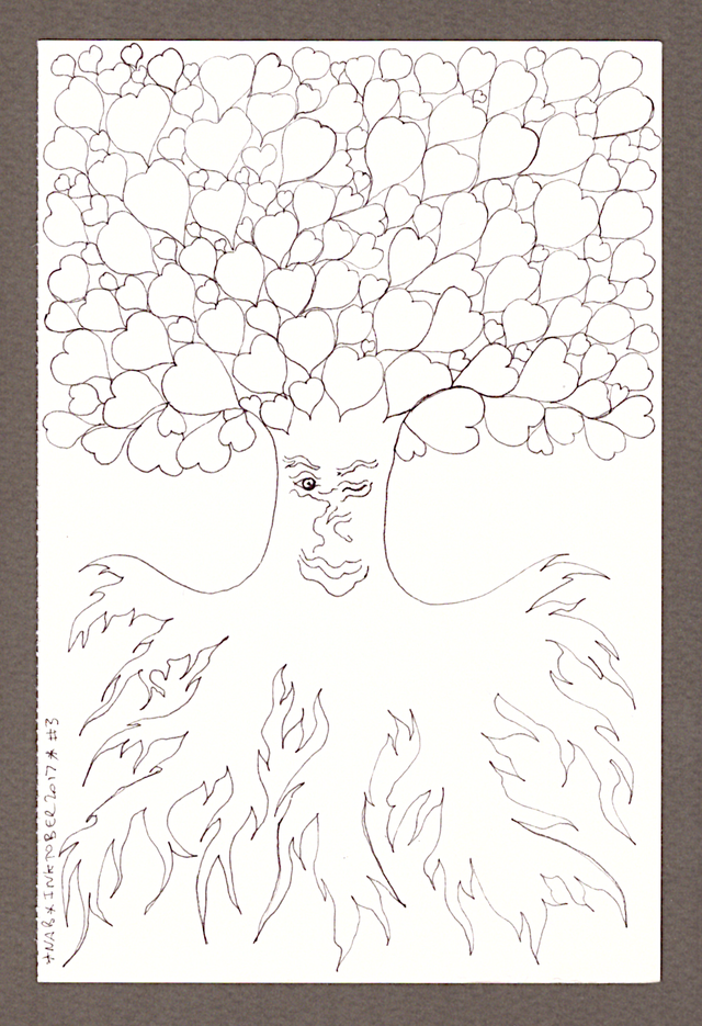 Illustration en noir et blanc de format 10,2cm x 15,2cm, réalisée aux pointes fines à l'encre de Chine.