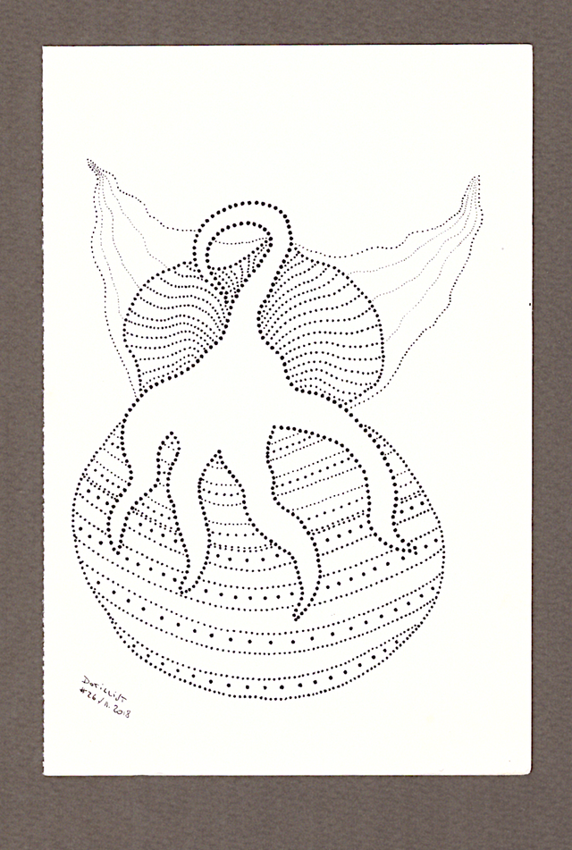 Illustration en noir et blanc de format 10,2cm x 15,2cm, réalisée aux pointes fines à l'encre de Chine.