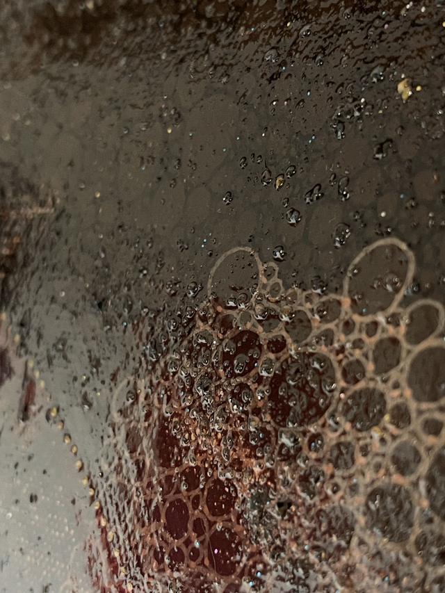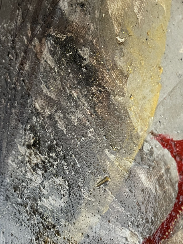 Œuvre originale en techniques mixtes incluant des paillettes, 2 couches de vernis dont une avec des pierres semi-précieuses broyées incrustées.